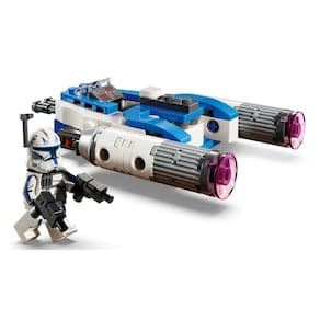 - Esta versão em miniatura do icônico caça estelar Star Wars tem uma cabine de minifigura e 2 disparadores de pinos, e a minifigura LEGO do Capitão Rex incluída vem com 2 blasters.