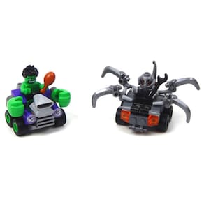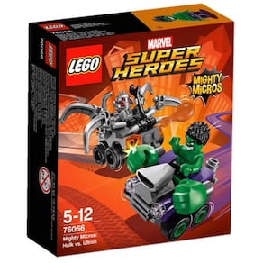 Lego Super Heroes 76066 Poderosos Micros Hulk Contra Ultron. Acelere em direção a Ultron na fantástica máquina verde de Hulk com punhos grandes. Repare o poderoso micro-veículo de Ultron com a chave-inglesa e faça esses tentáculos se moverem para cima e para baixo. Depois faça uma pausa com Hulk para comerem uma coxa de frango! Quem triunfará? Você é quem decide!