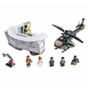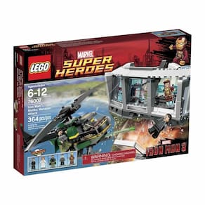 LEGO Super Heroes Iron Man Malibu Mansion Attack (76007) — Inclui 5 minifiguras: Tony Stark, Mark 42 Armor, Pepper Potts, o soldado Mandarim e Extremis — Apresenta a seção Malibu Mansion, o DUM-E e o helicóptero Mandarim — O helicóptero do Mandarim mede mais de 3" (9cm) de altura, 9" (25cm) de comprimento e 3" (9cm) de comprimento ampla - A seção Malibu Mansion possui função de janela explosiva, console de computador giratório e telas holográficas - o DUM-E inclui extintor de incêndio e mala Mark 5
