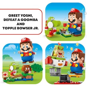 Expanda as possibilidades de jogo adicionando as construções e personagens deste conjunto a outros da enorme linha LEGO Super Mario. Aventuras com LEGO® Mario™ interativo – Deixe as crianças construírem uma batalha contra Bowser Jr. para assumir o controle de seu veículo Junior Clown Car com este conjunto de brinquedo LEGO® Super Mario™ 4 figuras de brinquedo LEGO® Super Mario™ – Uma figura interativa LEGO® Mario™, além de Bowser Jr., Yoshi e um Goomba Conjunto de aventura – Comece no tubo inicial, cumprimente Yoshi, derrote um Goomba, pise no? Bloqueie, enfrente Bowser Jr. e finalize no Goal Pole Batalha pelo Carro Palhaço Júnior