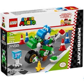 Descrição do produto : Acelere para uma ação emocionante de dirigir e derrapar com este conjunto de brinquedo de aventura colecionável LEGO Super Mario: Mario Kart – Yoshi Bike para crianças (72031). Uma ideia de presente emocionante da Nintendo para meninos, meninas e jogadores de 7 anos ou mais, o conjunto apresenta um modelo de tijolos da Yoshi Bike e, pela primeira vez em um conjunto LEGO Super Mario, uma figura de brinquedo Light-Blue Yoshi. Ajude o Light-Blue Yoshi a dirigir a moto entre 4 cones de trânsito, lançar conchas da moto e desviar da Banana. : Detalhes técnicos : Marca: Lego : Referência: 72031 : Idade recomendada: 7 : Quantidade de peças: 133 : Possui Luzes: Não : Possui Sons: Não : Dimensões aproximadas da embalagem: 19 x 13 x 4 cm (A x L x C) : Ean: 673419405621 :
