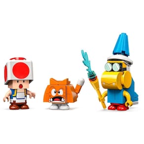 3 figuras LEGO: Kamek, Toad e um Goomba Gato.