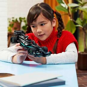 O LEGO® Technic Mercedes-AMG F1 W14 E Performance Pull-Back propõe a construção de 1 carro de corrida divertido para crianças.