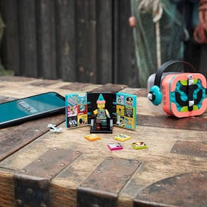 Abra o mundo da criação de videoclipes para crianças que adoram dançar e se apresentar. Este LEGO VIDIYO Punk Pirate BeatBox (43103) torna cada playtime emocionante. Baixe o aplicativo para digitalizar a minifigura pirata e revelar a persona de palco legal do punk pirate. Em seguida, escaneie os BeatBits para desbloquear efeitos especiais, desafios e muito mais à medida que as crianças produzem seu próprio videoclipe exclusivo, para compartilhar com outros criadores no feed social seguro para crianças. As crianças vão adorar estilizar o BeatBox usando as peças LEGO. Eles podem escolher entre uma âncora, baú de tesouros ou design de navio pirata – ou fazer o seu próprio. O BeatBox dobra-se com espaço para armazenar os BeatBits e minifigura, por isso é ideal para jogar em movimento. Os conjuntos LEGO VIDIYO oferecem uma experiência de jogo social segura, ajudando as crianças a se tornarem diretoras, produtores e estrelas de seus próprios videoclipes. Veja sua criatividade crescer à medida que produzem vídeos repletos de mash-ups musicais, personagens divertidos, músicas, movimentos de dança e efeitos legais.