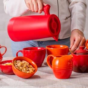 Leiteira ou Cremeira em CerÂmica na cor Laranja A wolff em sua arte de deslumbrar o serviço de mesa com peças requintadas, apresenta a linha retrô. O acabamento esmaltado resiste a água e aos cuidados do dia a dia proporcionando mais durabilidade às peças, além de iluminar a mesa posta com sua cor vibrante em efeito ombré. Os itens de cerâmica ganham vantagem mantendo os alimentos com sabor mais natural e retém mais calor, garantindo sempre a temperatura ideal para os alimentos. Material: Cerâmica Conteúdo da Embalagem: 01 Cremeira Especificações Técnica: Medidas: 12,5x8x9 cm Comprimento X Largura X Altura Peso: 205gr Marca: Rojemac Origem: Cuidados de Limpeza e Uso: Lavar com detergente neutro, esponja macia Secar com pano macio