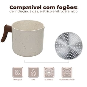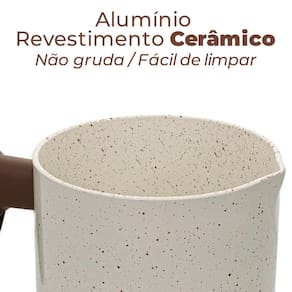 Características: Marca: Brinox Referência: 4774/351 Modelo: Ceramic Life Smart Plus Material do Fervedor: Alumínio Material do Cabo: Baquelite Siliconado (Soft-Touch) Cor: Vanilla e Marrom Quantidade: 1 peça