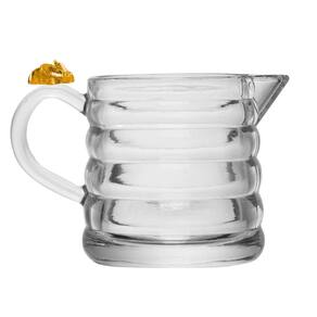 Leiteira little bee 300ml cristal resistente abelha colmeia A leiteira bee abelha é feita de cristal grosso, ondulada conforme uma colmeia, combinada com uma abelha âmbar na alça. Com capacidade de 300ml, é ideal para servir suas bebidas favoritas com elegância.