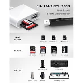 Leitor de cartão SD BNMXtek compatível com iPad Pro/Air/Mini, Mac, Macbook Pro/Air e laptop. Conecte e use! Insira e use com facilidade. Você pode compartilhar a bela paisagem a qualquer hora, em qualquer lugar. Nenhuma rede e energia extra são necessárias. Slot de cartão duplo: cartões SD/microSD, SDHC/microSDHC, SDXC/microSDXC da Dash Cam/Trail Game Cam/Digital Camera são suportados. Porta USB extra: não apenas suporta cartões de memória, mas também conecta dispositivos periféricos simultaneamente. Compatível com disco rígido USB, disco flash USB, teclado MIDI, microfone USB, mouse e a maioria dos dispositivos USB-A. Amplamente compatível com iOS e iPadOS: compatível com iPhone 15/15 Plus/15 Pro/15 Pro Max. Compatível com iPad Pro de 12,9 polegadas de 6ª geração/5ª geração/4ª geração/3ª geração, 11 polegadas de 3ª geração/2ª geração/1ª geração. Compatível com iPad Air de 11 polegadas de 5ª geração/4ª geração. Compatível com iPad mini de 8,3 polegadas de 6ª geração e mais iPad USB-C. Use o aplicativo “Arquivos” integrado do iPadOS para oferecer suporte à transmissão bidirecional de fotos e vídeos. É tão conveniente quanto ler arquivos em um computador. Basta inserir o cartão SD/micro SD no slot, acessar o aplicativo “Arquivos” e acessar a seleção 'NoName' (ou Untiled, que é o nome do seu cartão de memória) para selecionar seus arquivos do cartão SD. Em seguida, visualize/importe/exporte/exclua os arquivos conforme necessário no iPad. MacOS amplamente compatível: compatível com MacBook Pro/Air, iMac, Mac mini, Mac Studio e Mac Pro. O leitor de cartão USB-C para SD transfere fotos e vídeos de alta resolução para o seu Mac compatível com USB-C. Projetado para não bloquear suas outras portas. Plug and play, nenhum driver é necessário. Amplamente compatível com outros dispositivos USB-C: compatível com Samsung Galaxy S21/S20/S20+/ S20 Ultra/S10e/S10/S10+/S8/S9/S8+/ S9+ e muito mais. Lista de embalagem: 1 x adaptador de cartão SD USB C. 1 x manual do usuário. -?Leitor de cartão SD USB C?: Este leitor de cartão SD tem um conector USB tipo C, que é fácil de transmitir fotos/vídeos e dados de backup para seu laptop, telefones e tablets USB-C. Compatível com MacBook Pro/Air, iMac, Mac. Compatível com iPad Pro de 12,9 polegadas de 6ª geração/5ª geração/4ª geração/3ª geração, 11 polegadas de 3ª geração/2ª geração/1ª geração. Compatível com iPad Air de 11 polegadas de 5ª geração/4ª geração. Compatível com iPad mini de 8,3 polegadas de 6ª geração e Samsung Android e mais dispositivos USB-C. -?Design de slot duplo?: O leitor de cartão SD USB-C permite que você acesse vários tipos de cartões de memória de forma flexível e conveniente. Compatível com cartões SD, SDHC, SDHC, SDXC, Micro SD, Micro SD, Micro SD, Micro SDHC, Micro SDXC. -?Extensão da porta USB?: O adaptador de cartão SD de memória USB C também possui uma porta USB A fêmea, que pode conectar facilmente dispositivos periféricos USB, como disco flash USB, discos rígidos USB, teclado MIDI, mouse, teclado, etc. -?Plug and play?: Este leitor de cartão SD tipo C é compatível com macOS, Windows, Linux, Chrome. Sem driver, não requer software adicional de terceiros, plug-and-play, muito conveniente e portátil. Para iPad, você só precisa usar o aplicativo “Arquivos” integrado do iPadOS para importar e exportar. -?Compatível com portas compactas?:O adaptador de cartão SD é o assistente do fotógrafo, permitindo que você visualize imediatamente o melhor momento da lente. Design de porta amigável e compacto. Com o cabo USB-C de expansão integrado deste leitor de cartão SD, você pode economizar espaço e usar portas lado a lado. -?Lembrete amigável?: Este leitor de cartão SD USB-C possui um cabo USB-C embutido, portanto, não suporta o iPhone do conector Light-ning.