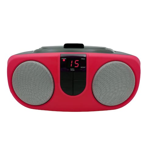 IMPORTANTE: Se for um produto elétrico, ele pode ser compatível com uma tomada de 110 volts. Se utilizado fora dos Estados Unidos, pode ser necessário um conversor de voltagem para garantir a operação adequada. Verifique se o produto que você está comprando é elétrico antes de considerar essas informações. Leitor de CD portátil PROSCAN ELITE com caixa de som de rádio AM/FM (vermelha)