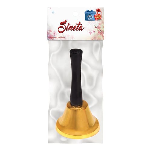 Lembrancinha Sino Sineta De Metal Com Cabo De Madeira 13 cm Este é mais um daqueles objetos que estamos acostumados a ver na época de Natal, trata de um símbolo que remete a uma relação estreita com a data, ele é comumente visto badalando pelas mãos do Papai Noel. Então resolvemos trazer para você o Enfeite Natalino Sino Dourado para ornamentar Árvore de Natal e outras Decoração Natalina, sua cor e forma despertam os olhares das pessoas e acrescentam um toque sutil de beleza. O sino simboliza o anúncio, a chegada, do Natal em seu verdadeiro significado. Especificações técnicas: Modelo: sino. Composição: Metal E Madeira Dimensões: Altura: 4cm. Diâmetro da base: 3,5cm. Cor: dourado. Quantidade: 1 Unidade