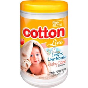 Lenços e toalhas umedecidas. Os lenços e toalhas umedecidas cotton line são macias, delicadas e especialmente desenvolvidas para o bebê. Testadas dermatologicamente não possuem álcool e ajudam a hidratar a pele delicada.