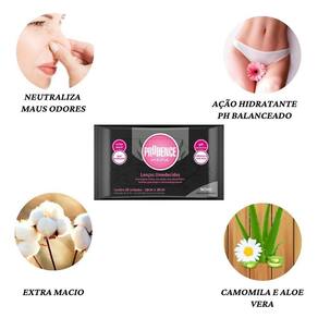 Sua fórmula possui fragrância com tecnologia neutralizadora de maus odores e oferece ação hidratante com a presença da camomila e aloe vera. Além disso, oferece PH balanceado pois contém ácido lático, substância naturalmente presente na região íntima onde acaba respeitando o equilíbrio fisiológico. Os lenços são formulados de maneira a minimizar possível surgimento de alergia e possuem textura extra macia. Testado Dermatologicamente e Ginecologicamente.