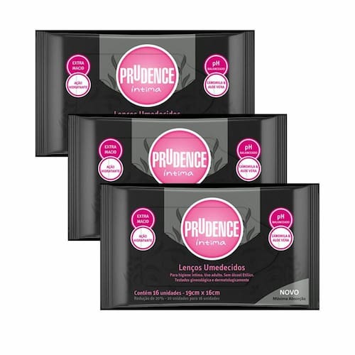 Cada pacote unitário de Lenços Umedecidos Prudence Íntima contém 16 unidades