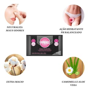 Sua fórmula possui fragrância com tecnologia neutralizadora de maus odores e oferece ação hidratante com a presença da camomila e aloe vera. Além disso, oferece PH balanceado pois contém ácido lático, substância naturalmente presente na região íntima onde acaba respeitando o equilíbrio fisiológico. Os lenços são formulados de maneira a minimizar possível surgimento de alergia e possuem textura extra macia. Testado Dermatologicamente e Ginecologicamente.