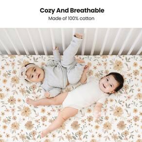 Konssy Lençóis de berço de musselina, 2 peças, lençol de berço 100% algodão para meninas e meninos, lençol de colchão elástico e respirável macio 71 x 132 cm para colchão de berço padrão - Super macios e respiráveis: estes lençóis de musselina para berço são feitos de 100% algodão (musselina) para serem respiráveis com toque macio para a pele e mantêm sua cor após lavados várias vezes. Mantenha seu bebê super confortável e macio com este lençol de berço - Tamanho perfeito: Vem com 2 peças de lençóis de berço. O lençol de berço com elástico é de grande elasticidade e fácil de remover. Cabe no berço: 71 cm x 133 cm (71 x 133 cm) e durável. Nosso lençol de berço é fácil de limpar e lavável na máquina (lavar antes de usar) - Ajuste confortável: totalmente revestido - elástico de 360 graus, mantém o lençol de berço no lugar o tempo todo quando o bebê rolar ou engatinhar no colchão. Fácil de colocar e segurar bem e firme sobre o colchão - Design fofo: nosso lençol de berço de musselina adornado tem 2 peças de estampas de cores diferentes que farão seu bebê parecer mais adorável, adequado para meninos e meninas! Coloque seu bebê para dormir em um lençol de berço macio e respirável - Bom presente para bebês: Estes lençóis de berço são produtos essenciais para todas as mães. Este lençol de musselina para berço será um presente prático e atencioso em chás de bebê, registro de bebê, Natal ou em qualquer ocasião especial de presente