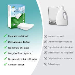 - Poder de limpeza ultraconcentrado: cada lençol de sabão em pó é embalado com agentes de limpeza poderosos para remover manchas e odores difíceis, proporcionando uma limpeza profunda com menos produto. Ideais para todos os tipos de roupas, esses lençóis são eficazes mesmo em água fria, economizando energia e oferecendo limpeza superior.