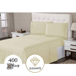Lençol 4 Peças Queen 400 Fios Toque Suave Ponto Palito Casa Dona - Bege