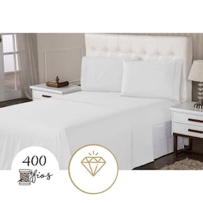 Lençol 4 Peças Queen 400 Fios Toque Suave Ponto Palito Casa Dona - Branco