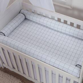 Lençol Avulso Com Elástico para Mini Berço 100%Algodão 200 Fios - Cor: Grid Branco