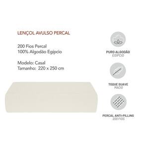 Contem: 1 Lençol Avulso Modelo: CASAL 100% Algodao Egipcio Percal 200 Fios Medidas: 220 x 250 cm