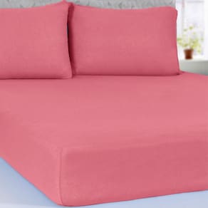 Lençol Casal Serena Malha 100% Algodão 138x188x23cm Goiaba - Fio 30/1, Elástico em Todo o Contorno da Peça