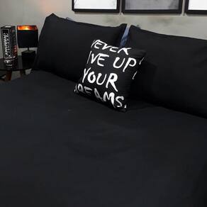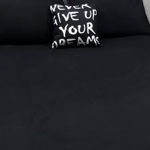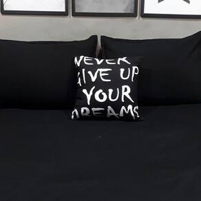 Lençol Com Elástico Casal Queen 4 Un Preto Almofada DecorJogo de lençol para clientes que além do conforto, não abre mão de exclusividade e bom gosto também ao se deitar. Com designer rico, despojado e jovial, os jogos de lençóis da marca garantem um clima atemporal para o seu quarto. Pensados e ousados para valorizar o seu decor.Disponível para cama: casal queenKit composto por 4 peças.1 lençol com elástico para cama de 1,98cmx1,58cm para colchões de até 40cm de altura - lençol cor preto2 capas de travesseiros ( fronhas ) de 0,70cmx0,50cm - capas cor preto1 almofada exclusiva da grife de 45cm x 45cm com enchimento - preto com estampa em branco - estampa: never give up your dreams - nunca desista dos seu sonhos - almofada com enchimento. Detalhes:Lençol com elástico em toda extremidade ( barra ) para garantir um melhor ajuste no seu colchão sem ficar escapando e subindo ao se deitar. Elástico de alta qualidade para melhor pressão e facilidade ao vestir no seu colchão. Almofadas com zipper invisível para um acabamento delicado e de fácil lavagem. Acompanha enchimentoEm fibra siliconada revestida por polipropileno antialérgico. Capas de travesseiros não acompanham enchimento.Composição do produto:Lençol e capas de travesseiros em microfibra acetinada 180 fios. Tecido de toque macio e anti-pillingAlmofada em microfibra 180 fios fosco anti-pillingNossas peças são reconhecidas mundialmente pela qualidade e veracidade a qual vendemos pela internet. As almofadas a venda é composto por todas as peças da foto imagem, incluindo os enchimentos.Nossa estampa é 100% digital, podendo lavar por varias vezes sem perder a resolução da estampa e nem desbotar com o tempo.Atenção: o produto pode sofrer pequena alteração de tonalidade de cor dependendo da configuração do seu computador, tablet ou celular. Marca: Casa Da Fama