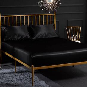 Lençol Com Elástico Solteiro mais uma fronha Cetim Preto