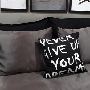 Lençol Com Elástico Solteiro King 4 Un Cetim GrafiteJogo de lençol para clientes que além do conforto, não abre mão de exclusividade e bom gosto também ao se deitar. Com designer rico, despojado e jovial, os jogos de lençóis da marca garantem um clima atemporal para o seu quarto. Pensados e ousados para valorizar o seu decor.Disponível para cama: solteiro kingKit composto por 4 peças.1 lençol com elástico para cama de 2,03cmx0,96cm para colchões de até 40cm de altura - lençol em cetim cor grafite2 capas de travesseiros fronhas de 0,70cmx0,50cm - capas em cetim cor grafite1 almofada exclusiva da grife de 45cm x 45cm com enchimento - preto com estampa em branco - estampa: never give up your dreams - nunca desista dos seu sonhos - almofada com enchimento. Detalhes:Lençol com elástico em toda extremidade barra para garantir um melhor ajuste no seu colchão sem ficar escapando e subindo ao se deitar. Elástico de alta qualidade para melhor pressão e facilidade ao vestir no seu colchão. Almofadas com zipper invisível para um acabamento delicado e de fácil lavagem. Acompanha enchimentoEm fibra siliconada revestida por polipropileno antialérgico. Capas de travesseiros não acompanham enchimento.Composição do produto:Lençol e capas de travesseiros em microfibra acetinada 180 fios. Tecido de toque macio e anti-pillingAlmofada em microfibra 180 fios fosco anti-pillingNossas peças são reconhecidas mundialmente pela qualidade e veracidade a qual vendemos pela internet. As almofadas a venda é composto por todas as peças da foto imagem, incluindo os enchimentos.Nossa estampa é 100% digital, podendo lavar por varias vezes sem perder a resolução da estampa e nem desbotar com o tempo.Atenção: o produto pode sofrer pequena alteração de tonalidade de cor dependendo da configuração do seu computador, tablet ou celular. Marca: Casa Da Fama