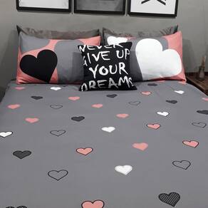 Kit composto por 2 peças. 1 lençol com elástico para cama de 1,88cmx0,88cm para colchões de até 40cm de altura - lençol cor cinza com estampa Love Designer 1 capa de travesseiro fronha de 0,70cmx0,50cm - capas em cor cinza com estampa Love Designer