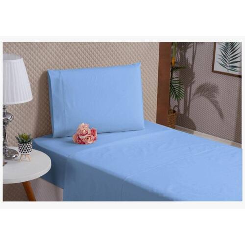 Lençol de algodão 3 peças azul solteiro percal 180 fios Jogo de lençol solteiro 3 peças Extrema maciez, vai deixar sua noite de sono mais confortável por ser produzido em um tecido percal 180 fios e 80% algodão, com ótimo acabamento, dará um ar mais elegante para o seu quarto. Contém: 01 lençol com elástico para colchão de: 1,88 x 0,88m x 0,25 cm de altura.01 lençol com acabamento em bainha 2,45m x 1,35m.01 fronhas 70cm x 50cm. As fronhas possuem um lindo acabamento em ponto palito Composição: 80% algodão e 20% poliésterTecido: percal 180 fios