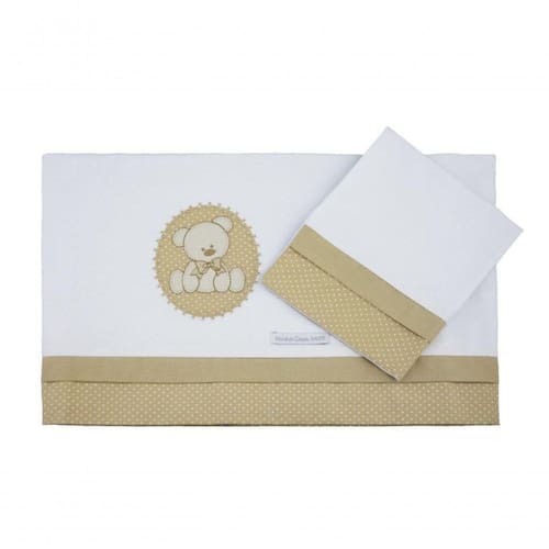 01 fronha branca com barradinho estampado conforme o detalhe do lençol de cima 28cm x 36cm .