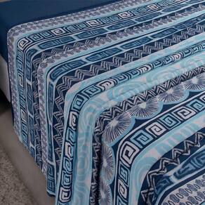 Lençol De Cima Avulso Luar Estampado Queen 01 Peça Malha 100% Algodão - Azul Marinho Geométrico
