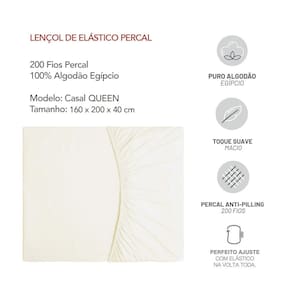 Lençol Elastico QUEEN Branco Off White Algodao Egipcio 200 Fios