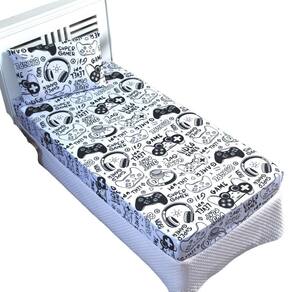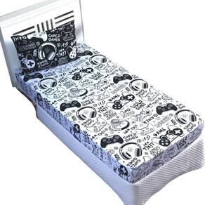 Lençol com elástico solteiro micropercal 200 fios menino game branco e preto 1 pç