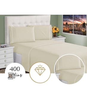 Lençol King 3 Peças 400 Fios Toque Macio Ponto Palito Casa Dona - Bege Claro