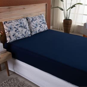 Lençol King Malha Fio Penteado Algodão 3 Peças - Marinho