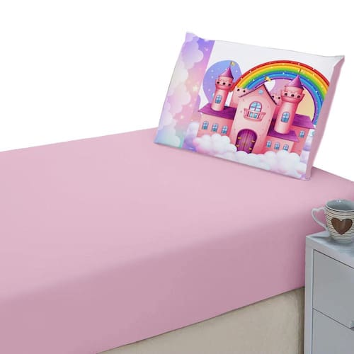 Lençol Liso Elásticado + Fronha Estampada Decorativa
