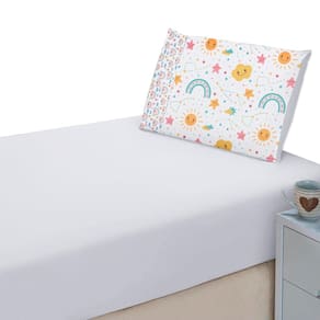 O lençol possui um tamanho adequado para colchões infantis e conta com elástico em toda a borda, o que ajuda a mantê-lo firme no lugar durante a noite, evitando que se mova ou se deslize enquanto a criança dorme. A fronha tem uma abertura lateral, facilitando a colocação e retirada do travesseiro.