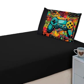 O lençol possui um tamanho adequado para colchões infantis e conta com elástico em toda a borda, o que ajuda a mantê-lo firme no lugar durante a noite, evitando que se mova ou se deslize enquanto a criança dorme. A fronha tem uma abertura lateral, facilitando a colocação e retirada do travesseiro.
