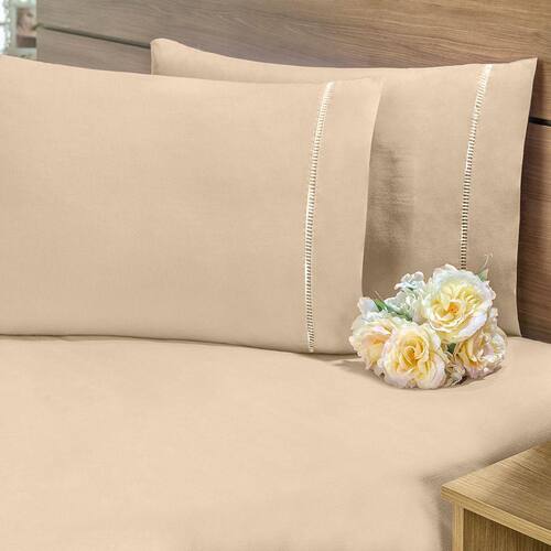 Jogo De Lençol Ponto Palito Queen 3pçs Percal 180 Fios Cáqui- Tecido percal 180 fios- Acabamento em bainha- Lençol de baixo com elástico em toda volta- Detalhe em ponto palito nas fronhasProduto composto por:01 Lençol de Baixo com Elástico 2,70m x 2,30m para colchão de 1,98m x 1,58m até 30cm de alt.02 Fronhas 70cm x 50cmCOMPOSIÇÃO: Tecido 80% Algodão / 20% Poliéster