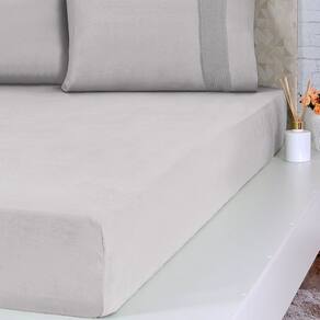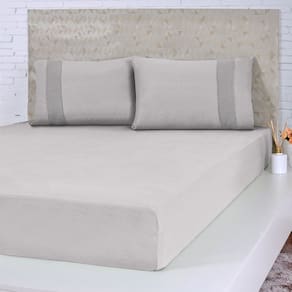 Lençol Queen Bella Cama Malha 100% Algodão 158x198x35cm Cinza -