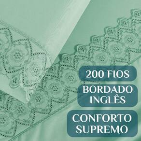 Lençol Solteiro London Bordado Inglês 200 Fios 3pçs C/elastico Extra Macio Luxo NOBLESS Cor: Verde