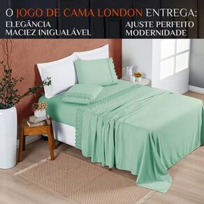 Mime-se com o melhor em conforto e luxo com o Lençol Solteiro London Com seu bordado inglês delicado e tecido de 200 fios, este conjunto oferece uma experiência de sono extraordinariamente macia e confortável.