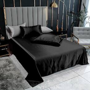 Lençol Superior Casal King Com 2 Fronhas Cetim Seda Preto