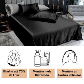 Lençol Superior Casal King Com 2 Fronhas Cetim Seda Preto