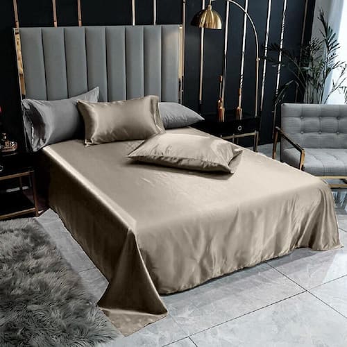 Lençol Superior Casal Padrão Com 2 Fronhas Cetim Seda Bege Deixe seu quarto mais elegante com Lençol em Cetim Charmousse, tenha noites aconchegantes e com um toque de suavidade em sua pele. Cabelos e Pele Perfeitos