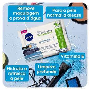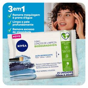 Os Lenços De Limpeza 3x1 Nivea Visage são utilizados para remover maquiagem ou retirar todas as impurezas e oleosidades da pele, deixando-a macia e hidratada. Possui um delicado aroma que deixa a pele suavemente perfumada e com a sensação de frescor e bem estar diariamente. Pode ser usado em todos os tipos de pele.