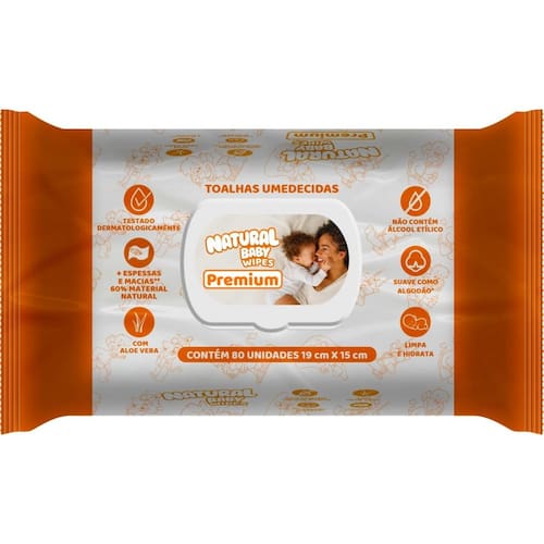 Lenços Umedecidos Natural Baby Premium - 80 UnidadesA Ever Green, indústria de produtos descartáveis para higiene pessoal, acaba de lançar a linha Natural Baby Wipes Premium de toalhas umedecidas infantis, que limpam profundamente, ao mesmo tempo que protegem e hidratam a pele do bebê.Produzidas com 60% de matéria prima natural, as toalhas umedecidas Natural Baby Wipes Premium contêm o poder hidratante da aloe vera, que hidrata a pele do bebê, evitando assim as temidas assaduras.O produto, sem álcool etílico e sem parabeno, tem o toque macio que lembra o algodão, e ao mesmo tempo é mais espesso e resistente, o que facilita na hora da higienização durante a troca de fraldas.A linha Natural Baby Wipes vem em pacotes com 80 toalhinhas umedecidas.