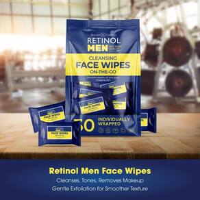 - Retinol Lenços masculinos embalados individualmente, essenciais de viagem para o trabalho, academia e em movimento - Lenços umedecidos grandes para rosto + corpo, frescos e limpos, com água micelar e vitamina A-C-E
