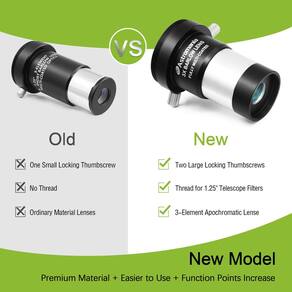 Esta barra Antares de alto desempenho triplica o poder de qualquer ocular inserida. Possui um design acromático totalmente multirevestido. Este barlow curto funciona em diagonais ou refletores, tem lentes de escurecimento interno e escurecimento nas bordas e é parfocal com a maioria das oculares. Adequado para aplicações de alto contraste e alta potência em qualquer telescópio. Triplica a potência de qualquer ocular de 3 cm sem adicionar uma extensão muito longa entre o telescópio e a ocular. Insira no suporte ocular ou diagonal do telescópio primeiro, depois insira sua ocular no Barlow. Compatível com quase qualquer telescópio que usa oculares de 3,15 cm, independentemente da marca e até mesmo aqueles com alcance de foco limitado. - Aumento de 3x na ampliação: nitidez superior e correção de cor; componentes ópticos; ampliação real de computação física - Não apenas aumenta a ampliação; a imagem será mais clara do que o aumento médio na ampliação até 15 vezes a nitidez da imagem - Barlow premium: as câmeras SLR Bayonet podem ser conectadas para aumentar os múltiplos da câmera para tirar fotos - Essencialmente triplica a potência de qualquer ocular de telescópio de 3,15 cm com a lente Barlow universal; adequada para aplicações de alto contraste e alta potência em qualquer telescópio - Compatível com a maioria das oculares de telescópio de 1,25 polegadas de diâmetro; filtros de telescópio; câmera DSLR e outros acessórios do tipo T-thread